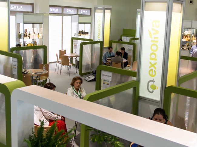 Stands mixtos de diseño y estructuras modulares para la feria del sector olivero Expoliva. Cliente: Ifeja, Institución ferial de Jaén.